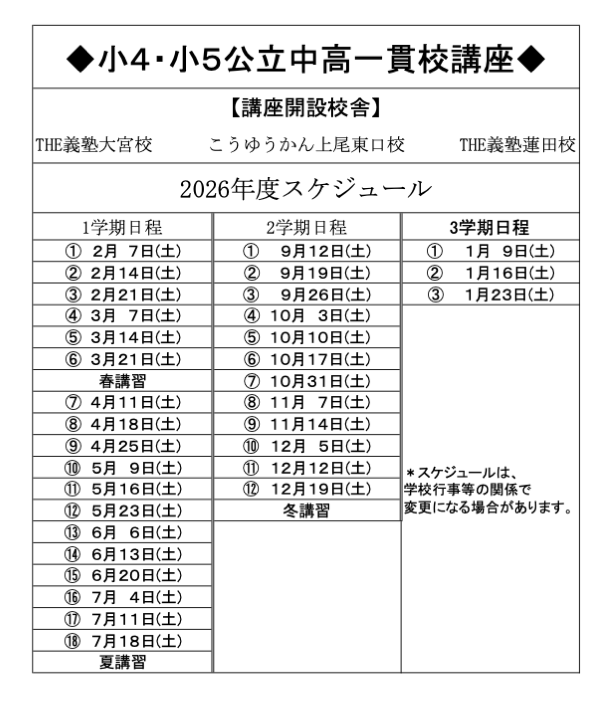 小4生・小5生対象の公立中高一貫校講座は、2月が新年度スタートです。